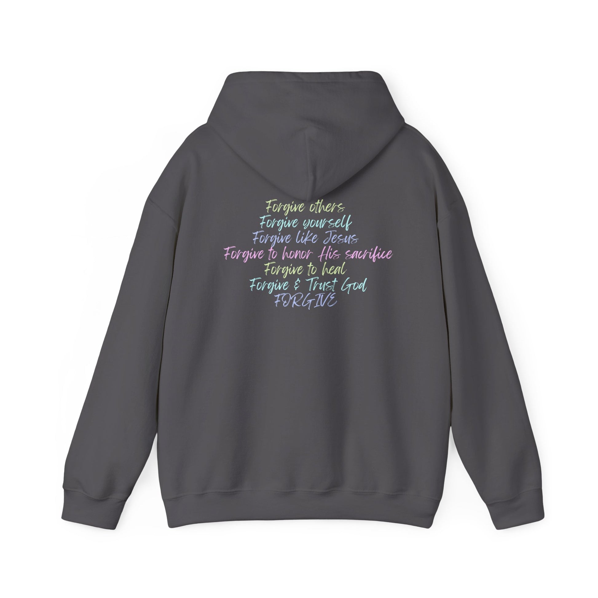 This Christian faith based Forgive Hoodie is a cozy and warm addition to your wardrobe. Perfect for those who want to express their faith and forgiveness in style. Ideal for individuals who celebrate Christian beliefs or those who value forgiveness and positivity in their lives. Great for holidays like Christmas, Easter, and Thanksgiving.