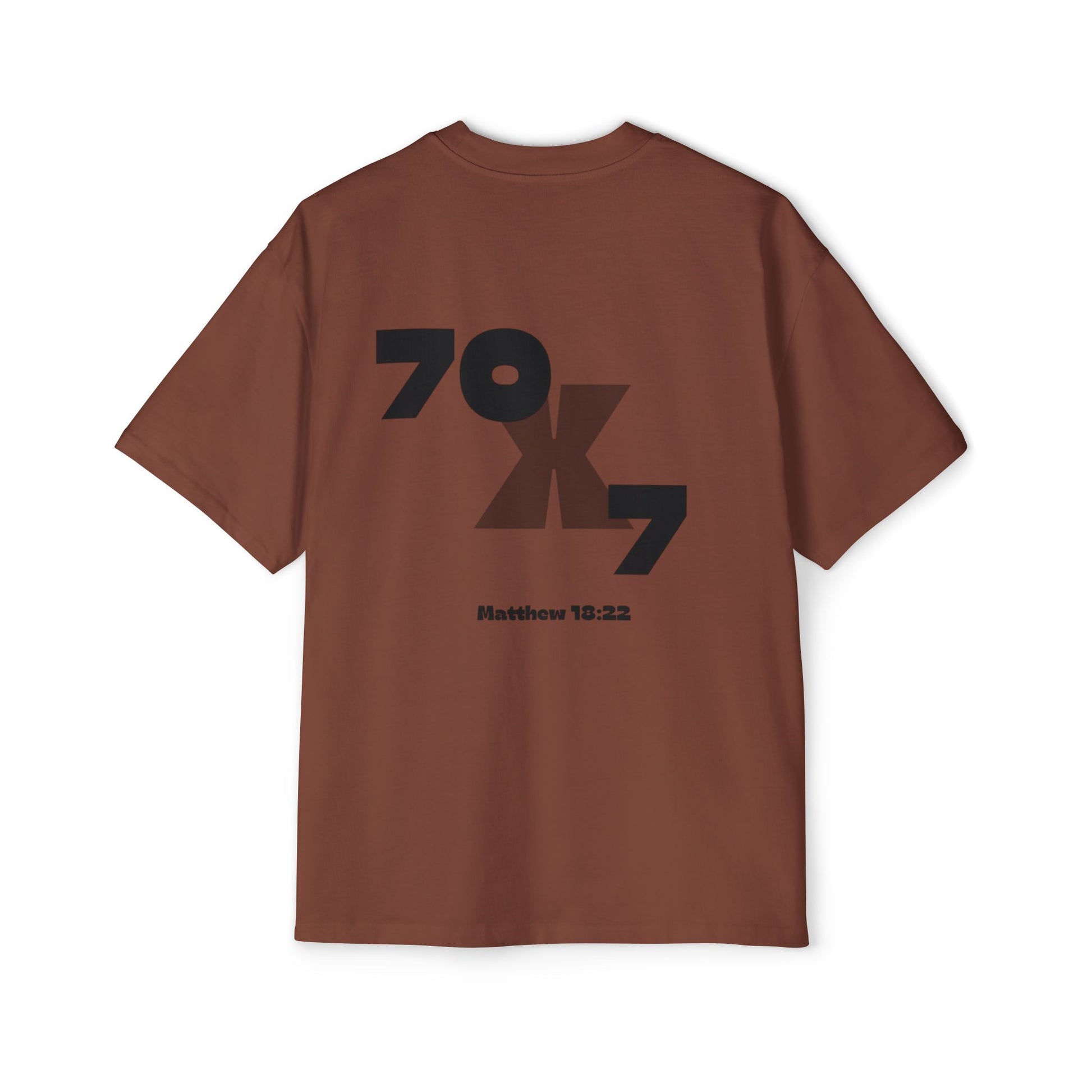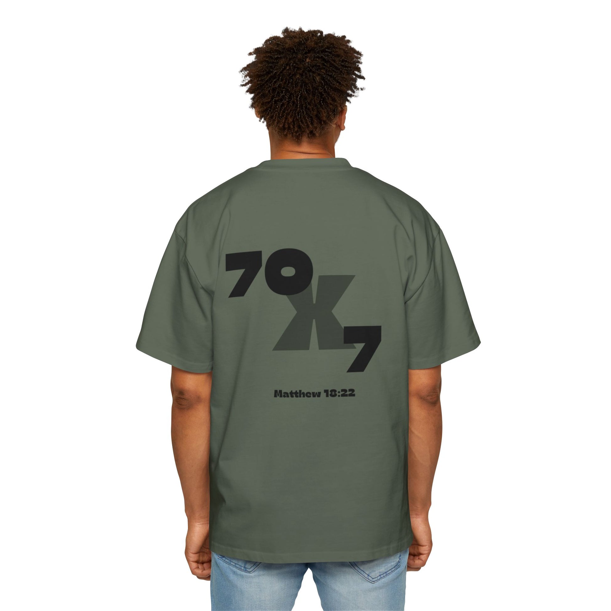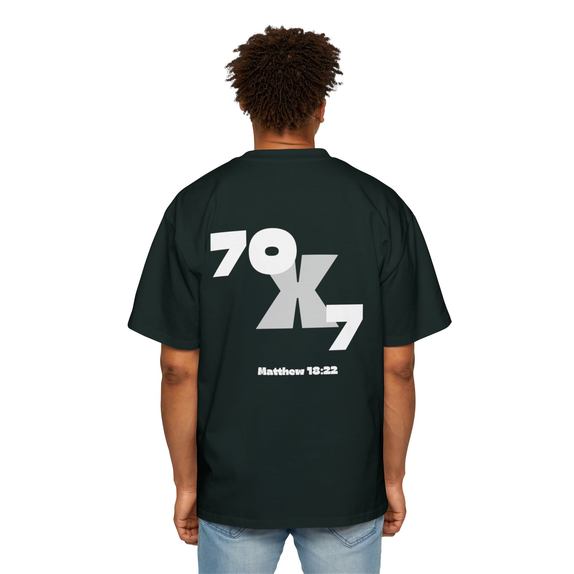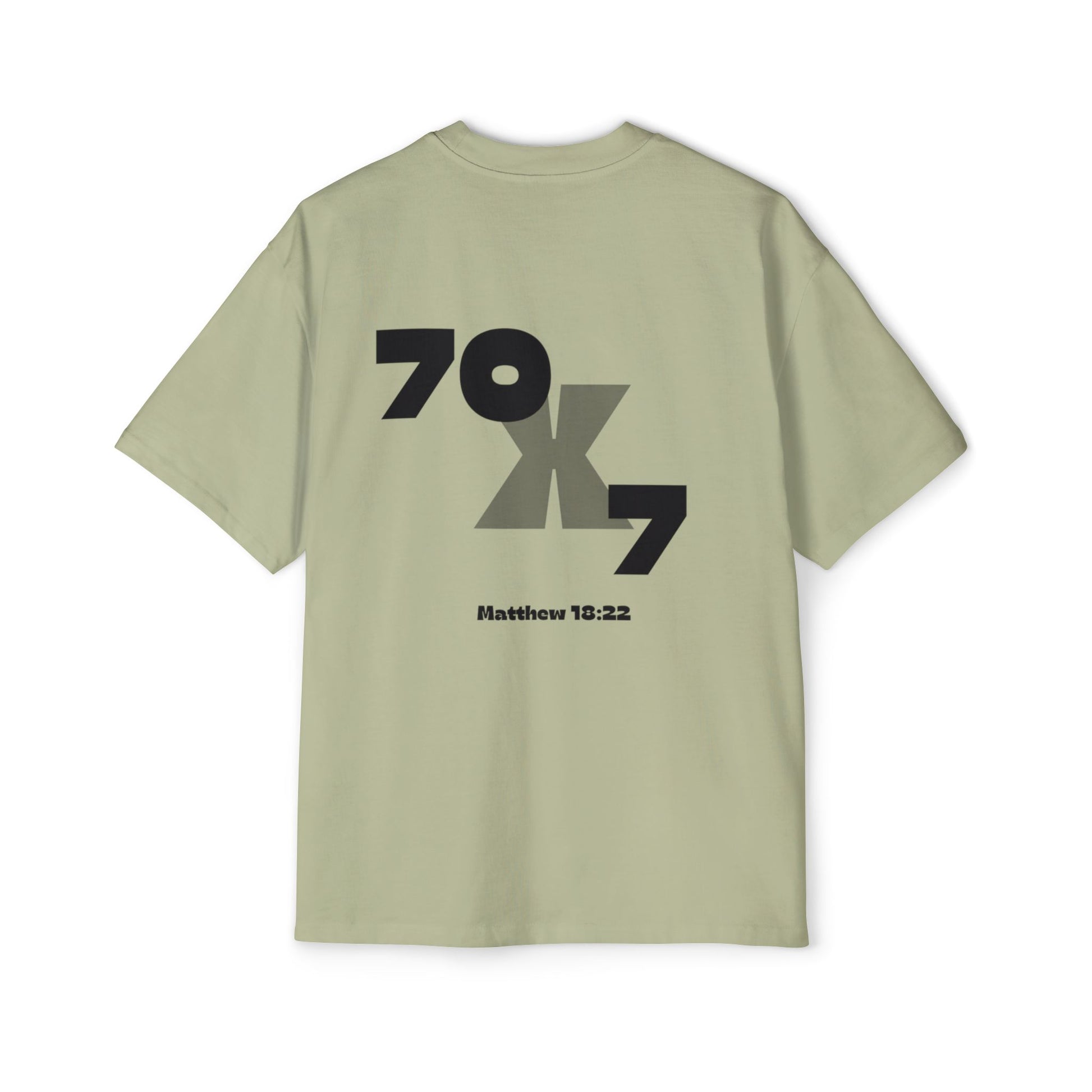 This Men's Heavy Oversized Tee features an inspiring Seventy x Seven Christian forgiveness quote, offered in multiple colors. With dropped shoulders for a relaxed fit and feel, and shoulder-to-shoulder tape for stability, this tee is made from durable 100% carded cotton. Perfect for those seeking inspiration and comfort in their daily life, this tee is relevant to Christian celebrations and observances.